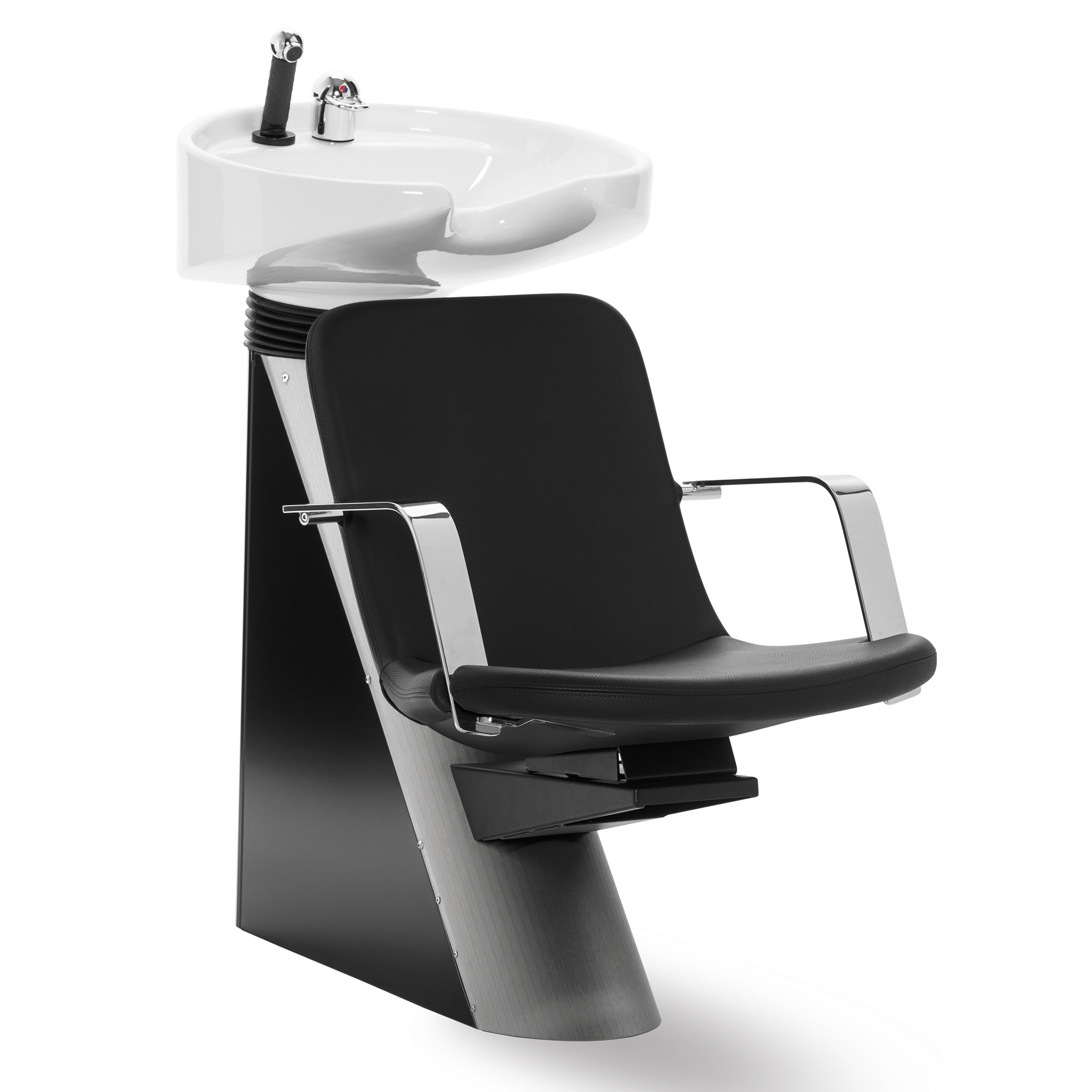 Kantelbare wastafel in zwart of wit met basis- of editie mengkraan, interne doucheslang, roestvrijstalen / aluminium onderbouw met revisieklep, enkelvoudig, rij- en wandmontage mogelijk, met bijna alle vaste, synchroon verstelbare (S) of verplaatsbare (R) OLYMP – Stoelbladen beschikbaar.